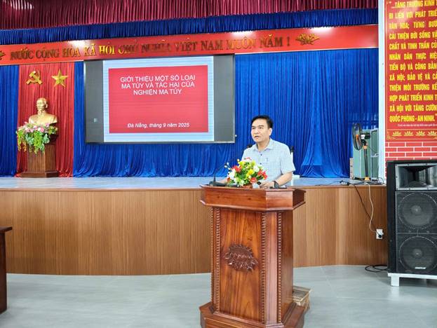 Đồng chí Đỗ Trường Lưu – phó trưởng khoa phòng chống HIVS trung tâm kiểm soát bệnh tật Quảng Nam – Báo cáo viên tuyên truyền 4 nội dung quan trọng về phổ biến Pháp luật về phòng chống tội phạm, đấu tranh phòng chống tội phạm ma tuý; Giới thiệu một số loại ma tuý hiện nay đang sử dụng, tác hại hệ luỵ khi người sử dụng ma tuý đã lệ thuộc; Tuyên truyền về các hoạt động chương trình điều trị bằng thuốc thay thế Methadone; Giới thiệu về lợi ích của chương trình điều trị nghiện các chất dạng thuốc phiện bằng thuốc thay thế (Methadone)