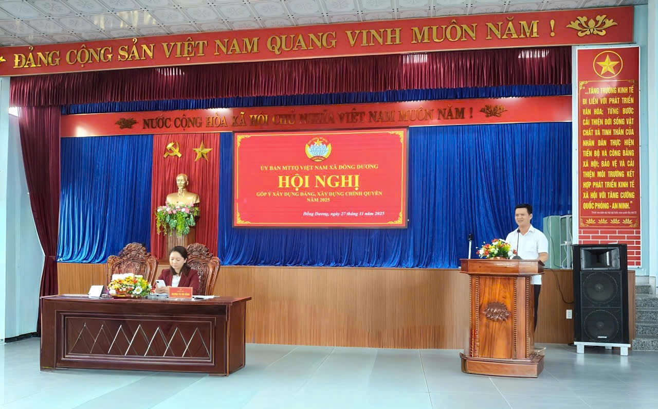 Sáng ngày 27/11/2025, tại Hội trường Đảng ủy xã Đồng Dương, Ủy ban MTTQ Việt Nam xã tổ chức Hội nghị góp ý xây dựng Đảng, xây dựng chính quyền năm 2025.