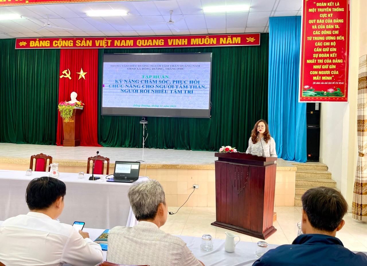 Trung tâm Điều dưỡng người tâm thần Quảng Nam (thuộc Sở Y tế thành phố Đà Nẵng) đã phối hợp với UBND xã Đồng Dương tổ chức Hội nghị tập huấn chăm sóc sức khỏe tâm thần tại cộng đồng.