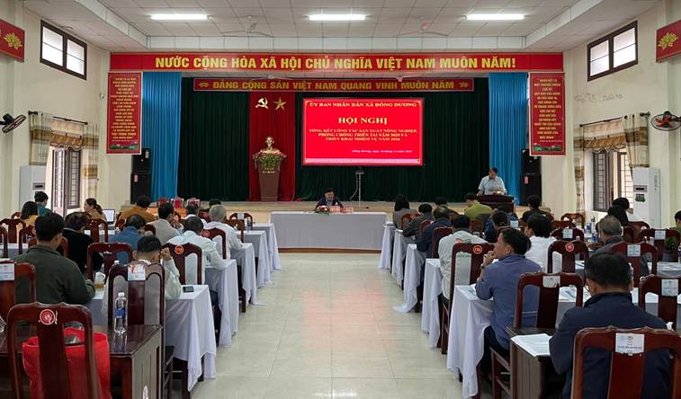 Phát biểu kết luận hội nghị, đồng chí Lê Văn Thôi – Phó bí thư Đảng ủy, Chủ tịch UBND xã Đồng Dương nhấn mạnh các nhiệm vụ trọng tâm năm 2026, trong đó tập trung chỉ đạo sản xuất nông nghiệp theo hướng hiệu quả, bền vững; tăng cường công tác phòng, chống dịch bệnh trên cây trồng, vật nuôi; đẩy mạnh xây dựng nông thôn mới, phát triển kinh tế hợp tác, nâng cao thu nhập và đời sống cho Nhân dân. Theo dự báo năm 2026, dưới tác động của biến đổi khí hậu toàn cầu, tình hình thời tiết sẽ tiếp tục diễn biến rất phức tạp và khó lường. Vì vậy, để chủ động ứng phó thiên tai, giảm thiểu đến mức thấp nhất thiệt hại do thiên tai gây ra, các cấp, các ngành, đơn vị, các công ty, doanh nghiệp, các thôn ngay sau hội nghị này, phải xây dựng kế hoạch, phương án cụ thể và sớm triển khai công tác PCTT ở địa phương, đơn vị mình.