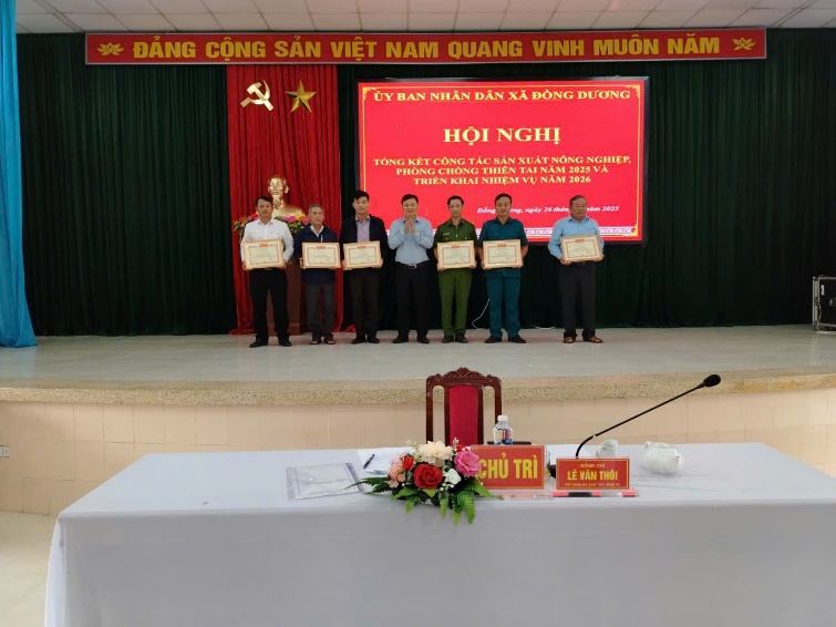 Nhân dịp này, UBND xã Đồng Dương đã khen thưởng 05 tập thể và 06 cá nhân có thành tích tiêu biểu trong công tác sản xuất nông nghiệp, phòng chống thiên tai năm 2025, góp phần tạo động lực thi đua thực hiện thắng lợi nhiệm vụ năm 2026.