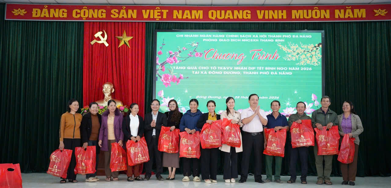 Tại chương trình, Công đoàn Ngân hàng CSXH Thành phố Đà Nẵng đã trao 10 suất quà, mỗi suất trị giá 500.000 đồng, đến các hộ nghèo, hộ cận nghèo, hộ gia đình chính sách và hộ có hoàn cảnh khó khăn của xã Đồng Dương. Những phần quà tuy giá trị không lớn nhưng mang ý nghĩa thiết thực, góp phần động viên tinh thần, giúp các gia đình đón Tết vui tươi, đầm ấm hơn. Cũng trong dịp này, Ngân hàng CSXH Thành phố Đà Nẵng đã trao 53 suất quà cho tổ trưởng các Tổ Tiết kiệm và Vay vốn (TK&VV) đang hoạt động trên địa bàn, mỗi suất trị giá 250.000 đồng. Đây là sự ghi nhận, động viên kịp thời đối với đội ngũ tổ trưởng Tổ TK&VV – những người đóng vai trò quan trọng trong việc triển khai hiệu quả các chương trình tín dụng chính sách, góp phần phát triển kinh tế, giảm nghèo bền vững tại địa phương.