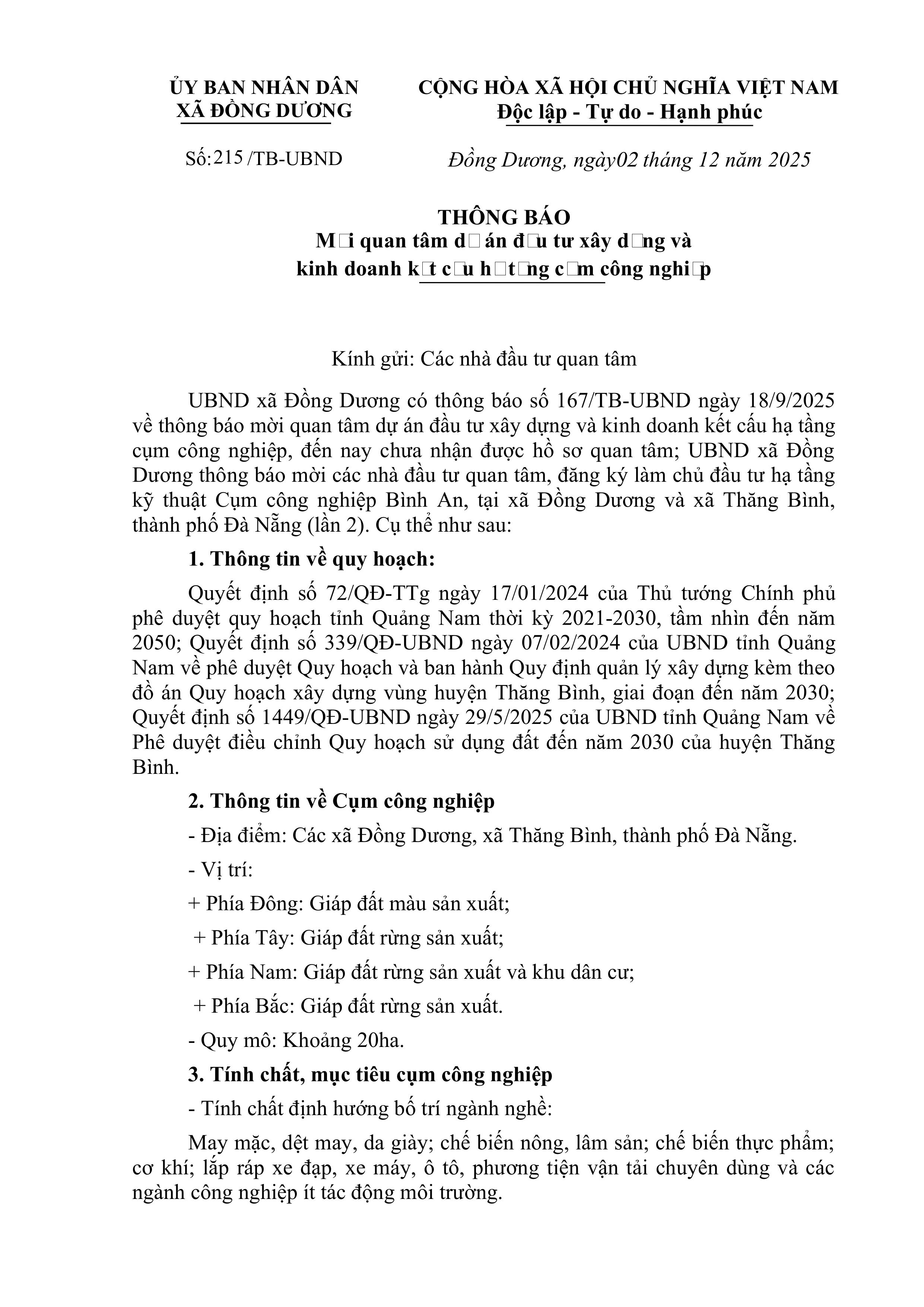 Mời quan tâm dự án đầu tư xây dựng và kinh doanh kết cấu hạ tầng cụm công nghiệp
